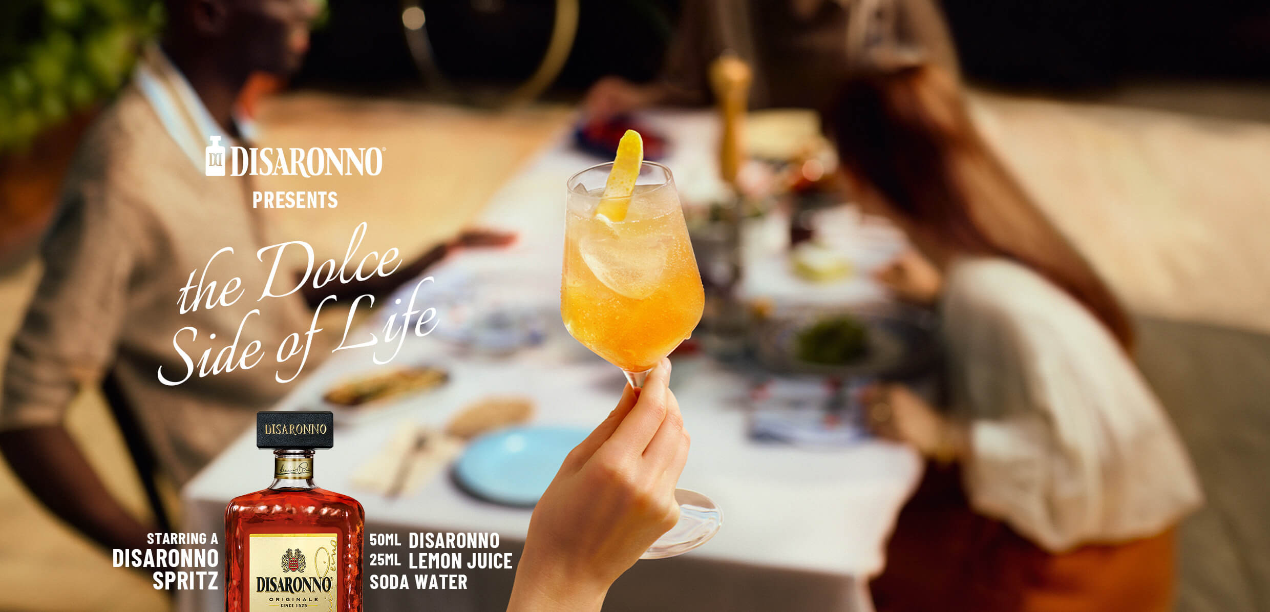 Una copa única, donde las notas distintivas de DISARONNO se encuentran con el aroma y la frescura del zumo de limón.