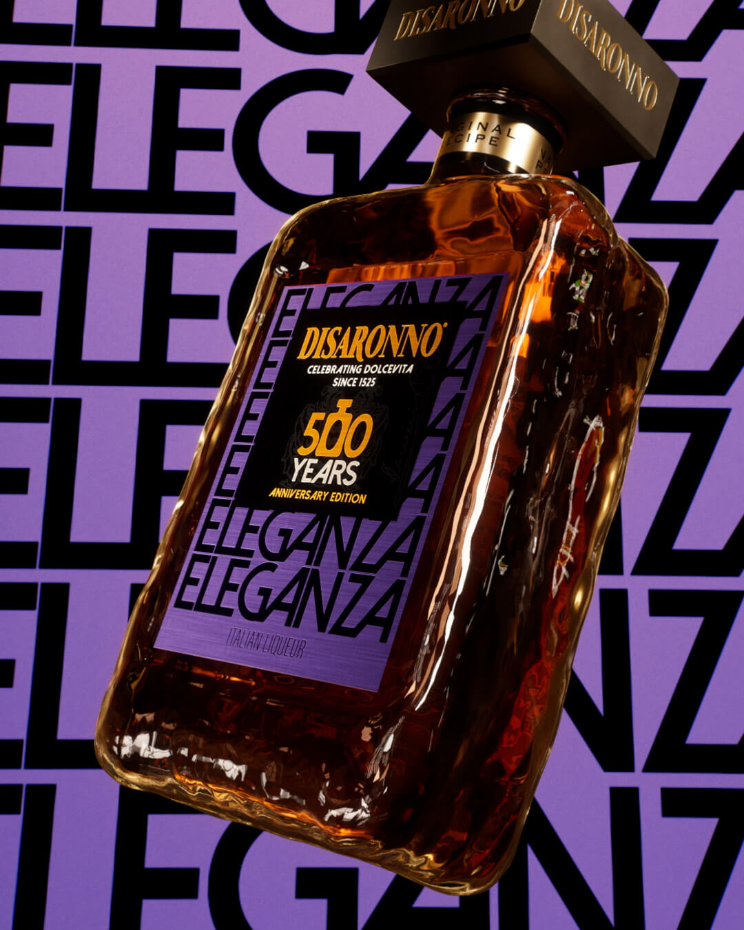 藉五百周年大庆之际,Disaronno隆重推出限量典藏系列,跨越时间长河,致敬品牌始终如一的精神。五款独特设计,凝聚流传五世纪的意式精髓:甜美生活(Dolcevita)、激情(Passione)、美丽(Bellezza)、风格(Stile)与优雅(Eleganza)。该系列通过五款独一无二的杰作,体现了Disaronno赖以成为意大利风格与品味永恒象征的核心品质——今日,它已被誉为全球最受欢迎意大利利口酒。